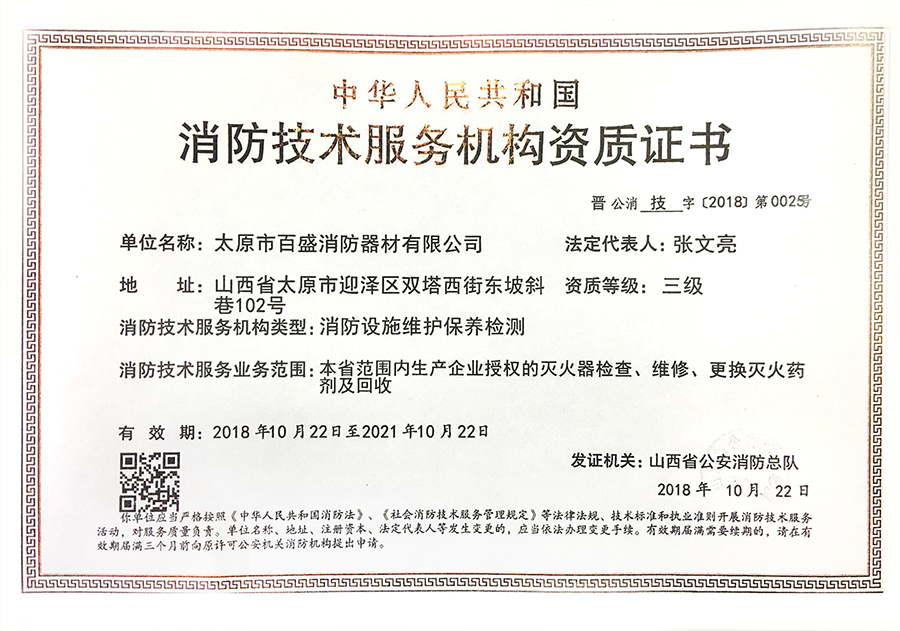 消防技術服務機構資質證書